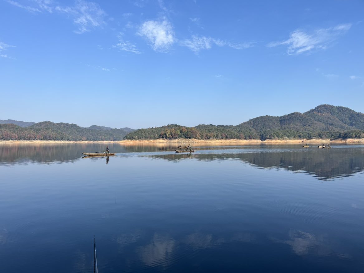 刚龟完回来,钓六个小时,换位置花了一小时,上三条小鲫鱼,累得半死。不过风景还是可以的