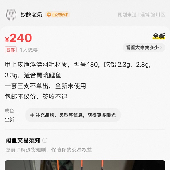 甲上攻渔130,羽毛的,一套三支210 米极江湖br11,1,2,3号180 都是全新包邮,不单出 图放一楼,闲鱼同名