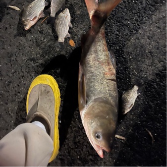 早上五点半到钓位,第一竿中个大胖头,0.8+0.3六分钟进户。