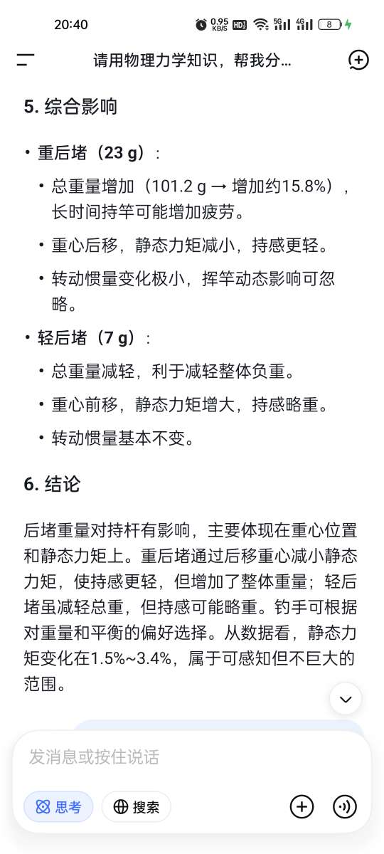 问:后堵重量对持感有没有影响,答案仅代表ai观点,因为我看不懂它的计算过程。