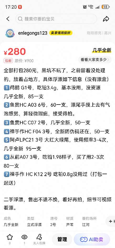 处理二手浮漂,阿卢、从前、禅手作鱼贯、宋杰麟 |